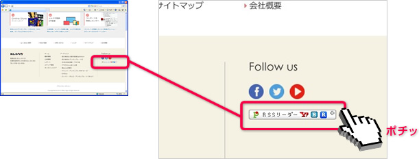 購読したい箇所に設置された「RSSリーダー」ボタンをポチッとクリックしてください。