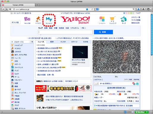 「Yahoo! JAPAN」のトップページから(↓)「MY Yahoo!」にさっと移動することができます。